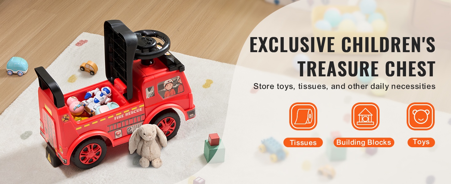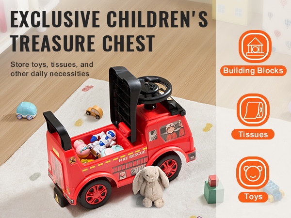 Istuimen alle on sijoitettu säilytyslaatikko, johon lapsi voi laittaa leluja, nenäliinoja, juomapullon ja muita pieniä tavaroita. Tämä auttaa opettamaan siisteys- ja säilytysrutiineja leikin yhteydessä.