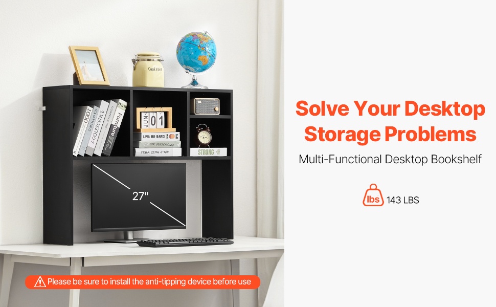 Tämä kahdella tasolla varustettu pöytähylly auttaa pitämään työpisteen, kotitoimiston tai opiskelutilan siistinä. Vahvat 0.6" / 15 mm paksut hyllylevyt kestävät jopa 132 lbs / 60 kg painon, joten niille voi asettaa kirjoja, mappeja, valokuvia, kuulokkeita ja koriste-esineitä. Kompakti koko sopii hyvin työpöydän päälle viemättä liikaa tilaa.