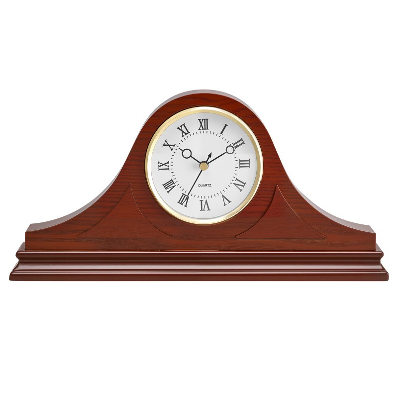 Tämä 6.4 in (162.5 mm) nostalginen takan pöytäkello sopii monenlaisiin sisustustyyleihin. Kirsikkapuun sävyinen puurunko on kestävä ja viimeistelty huolellisesti tyylikkään ilmeen luomiseksi. Kvartsikoneisto pitää ajan tarkkana ja toimii hiljaisesti, mikä tekee kellosta miellyttävän lisän kotiin.