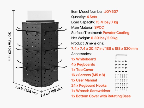 - Mukana 30 vakiokokoista koukkua (langan halkaisija ⌀0.16 in / 4 mm)