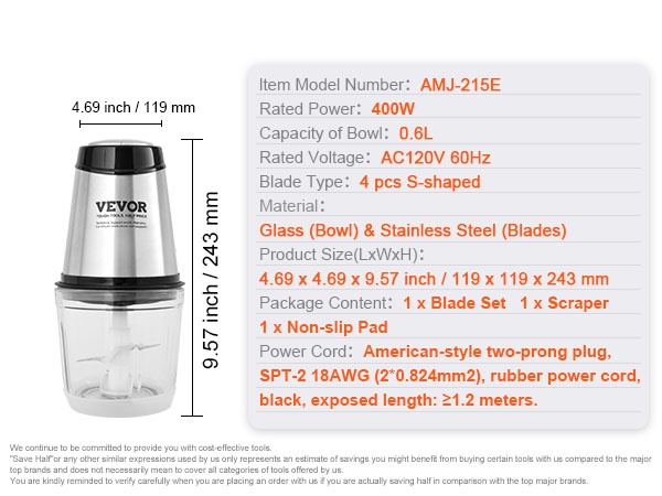- Jauhatusteho: 21 lbs/min (nopea käsittely suurille lihamäärille)