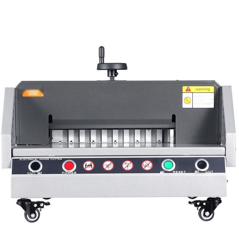 Tämä sähköinen pöytämallinen paperileikkuri on suunniteltu toimistoihin, kouluihin ja pieniin painotaloihin. Leikkuuleveys on 330.2mm/13 tuumaa ja leikkuusyvyys 40mm/1.57 tuumaa, joten yhdellä leikkuulla voi katkaista satoja tavallisia kopiopapereita. Laite soveltuu myös pehmeän nahan ja kirjojen leikkaamiseen (ei harmaalle kartongille tai PVC-muovilevyille). Paino on 45 kg ja tuotteen koko 595x605x390mm.