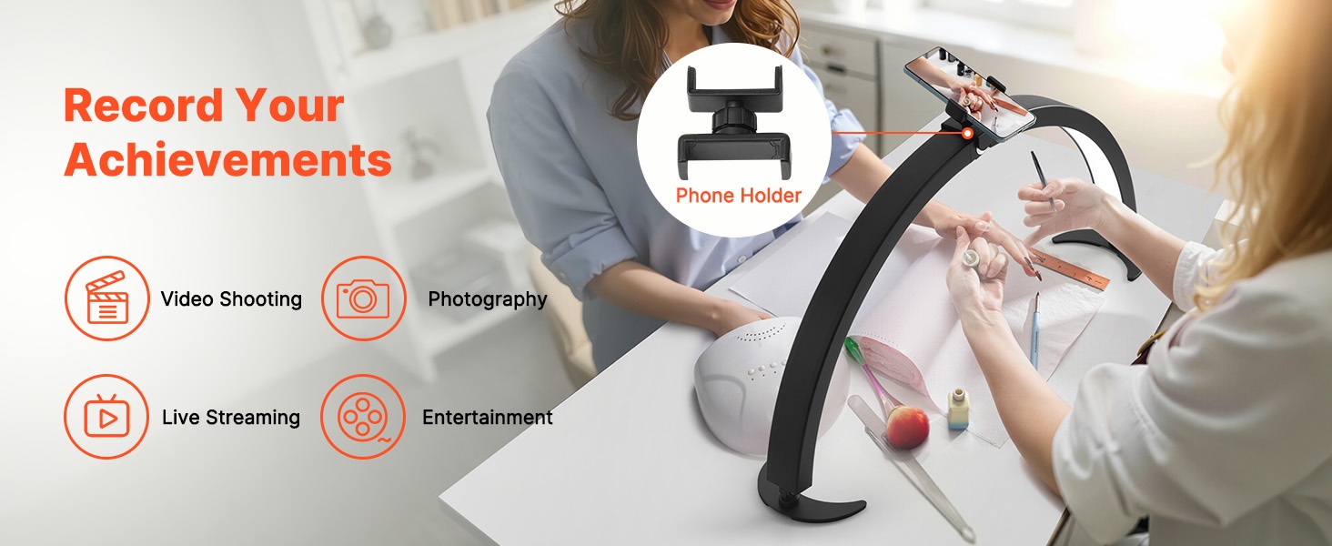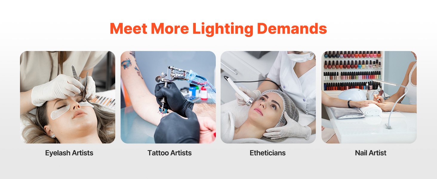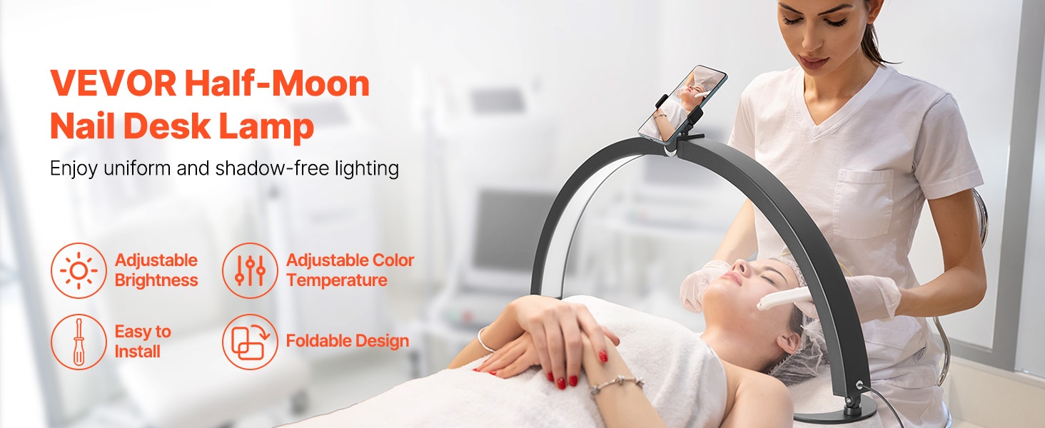Tämä puolikuun muotoinen pöytävalaisin tarjoaa tasaisen ja varjottoman valaistuksen esimerkiksi ripsien pidennyksiin, kynsityöhön, tatuointeihin ja muuhun kauneudenhoitotyöhön. Kaareva LED-rakenne valaisee koko työalueen, jolloin pienetkin yksityiskohdat näkyvät selkeästi.