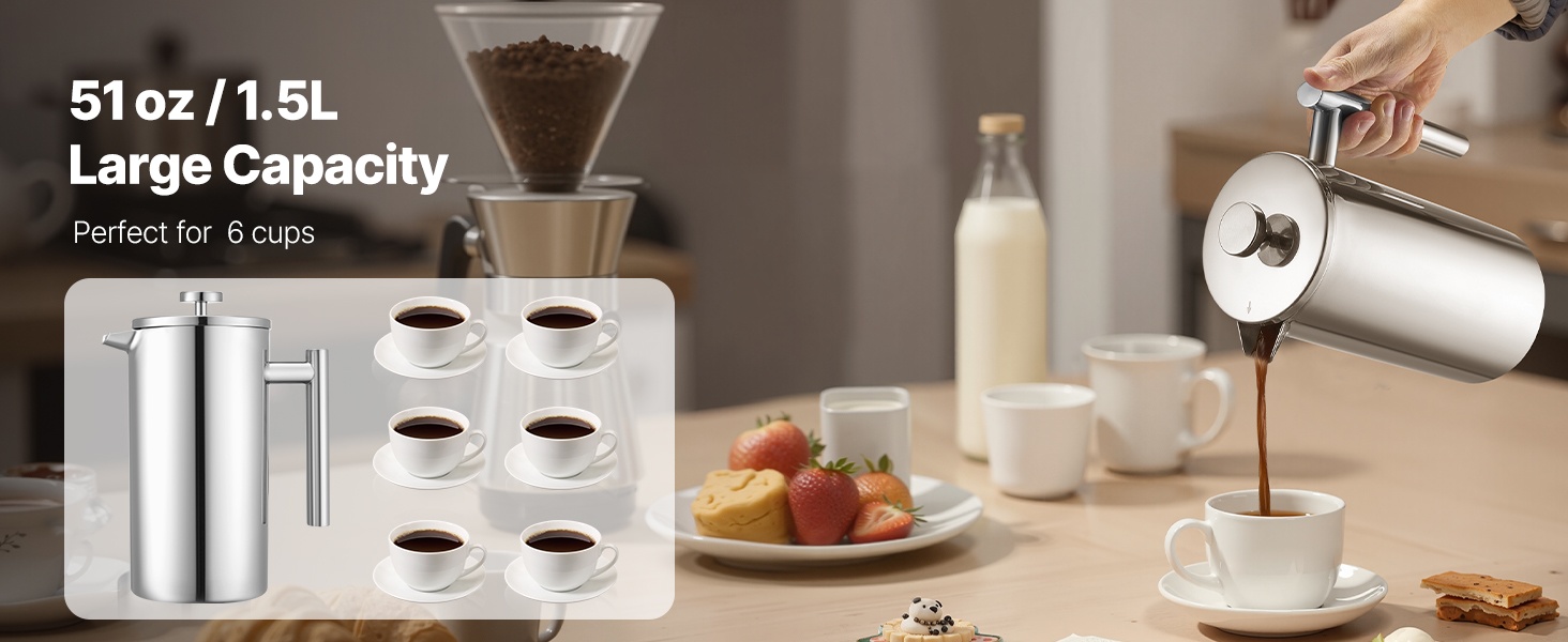 - Suuri 1.5L tilavuus useampaan kuppiin kerralla