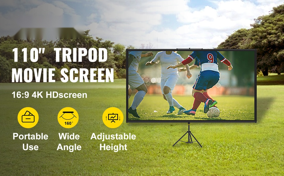 Tämä 100-tuumainen, kolmijalkaisella jalustalla varustettu projektorikangas tarjoaa 16:9-kuvasuhteen, 4K HD -kuvanlaadun ja 160 asteen katselukulman. Rypytön polyesteripinta ja korkeussäädettävä alumiinijalusta tekevät siitä käytännöllisen ratkaisun kotiin, toimistoon ja erilaisiin tilaisuuksiin sekä sisällä että ulkona.