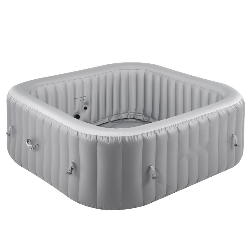 Tämä neliönmuotoinen, puhallettava ulkoporeallas tarjoaa mukavan kylpyhetken 4–6 henkilölle. Altaassa on 130 rentouttavaa hierontasuihkua, monitoiminen ohjauspaneeli sekä käytännölliset varusteet, kuten suodatin, suojakansi ja alustan matto. Kestävä PVC-verkkokangas ja tukeva rakenne tekevät altaasta sopivan ulkokäyttöön ympäri vuoden olosuhteista riippuen.