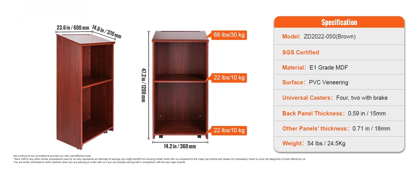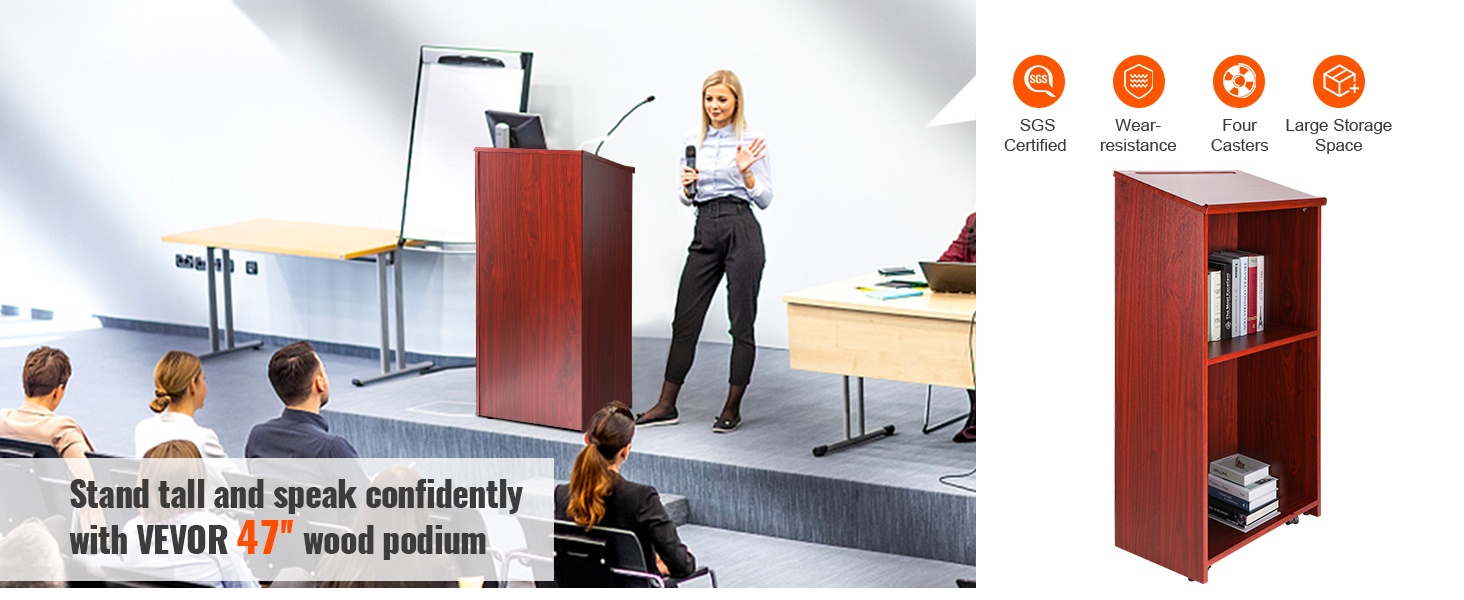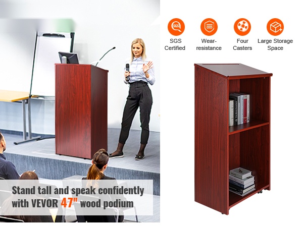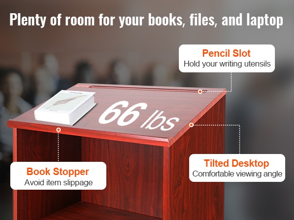 Akryylinen pöytämallinen puhujapöytä 49,5 cm korkea viisto taso kirjatuki