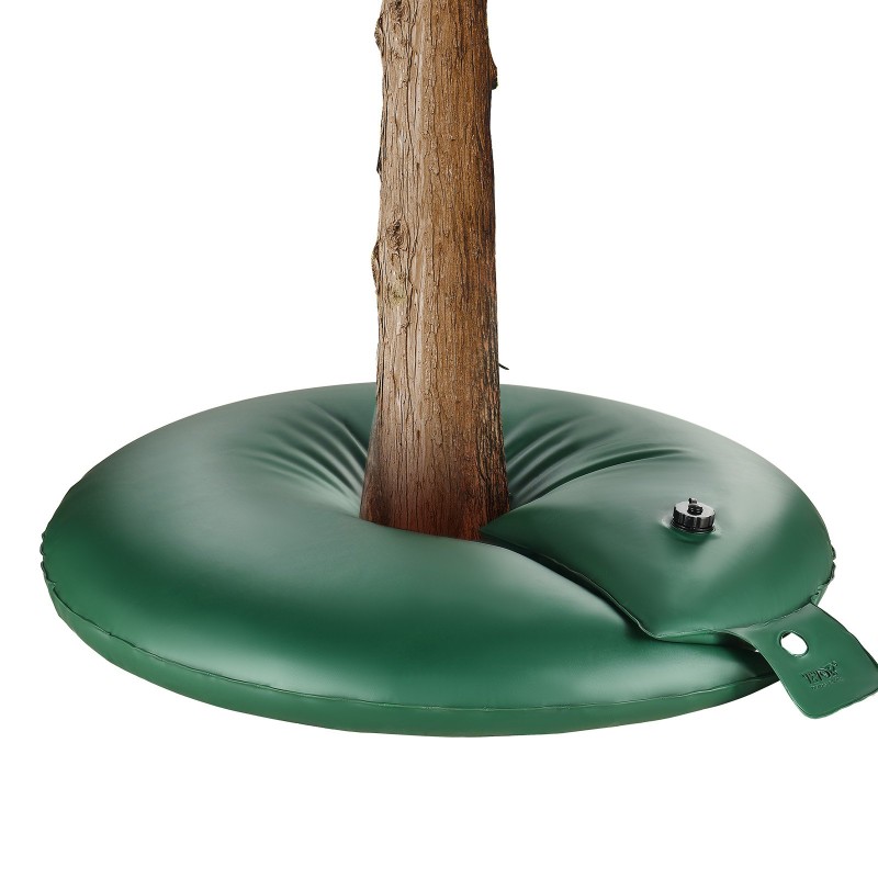 Poistoaukossa oleva hidas tiputusventtiili jakaa veden tasaisesti ja vähentää tukkeutumisriskiä. Kaksoiskahvat helpottavat renkaan kantamista ja asettelua puun ympärille.