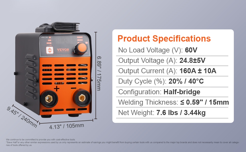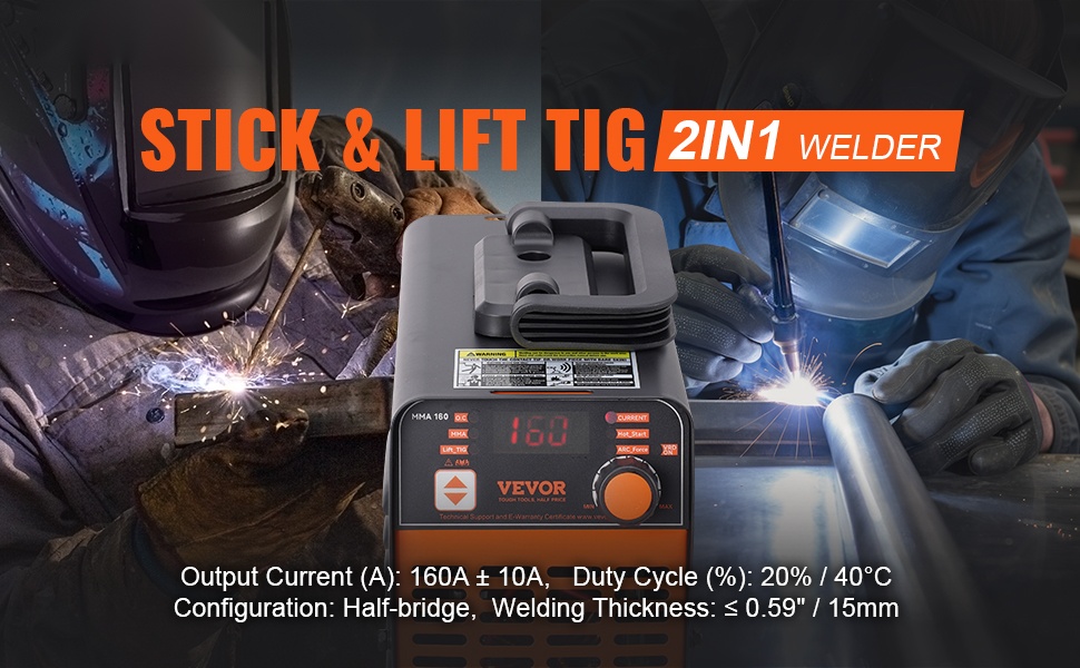 Kompakti 2-in-1 puikkohitsauskone ARC / Lift TIG -toiminnoilla soveltuu ruostumattoman teräksen, rakenneteräksen ja muiden metallien hitsaukseen. Mukana tulee kestävä elektrodipidike, maadoituspuristin ja hitsauspuikkoja, joten pääset aloittamaan hitsauksen nopeasti.
