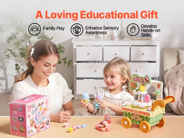 Värikäs jäätelöauto innostaa lasta luoviin leikkeihin ja tukee sosiaalisten ja motoristen taitojen kehittymistä. Se soveltuu hyvin yhteisiin leikkeihin sisarusten ja ystävien kanssa.