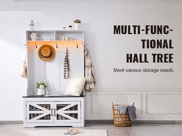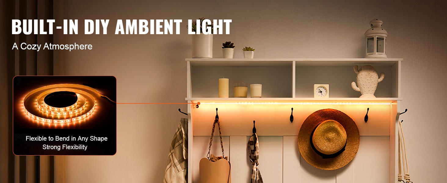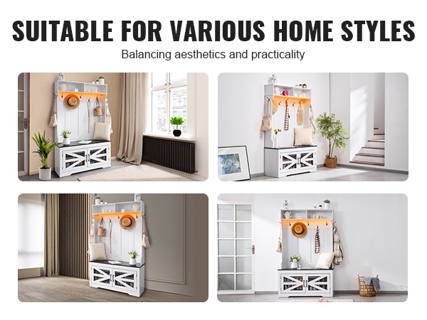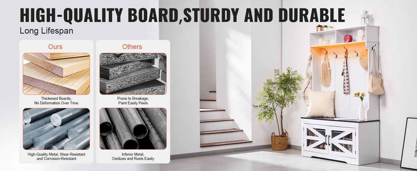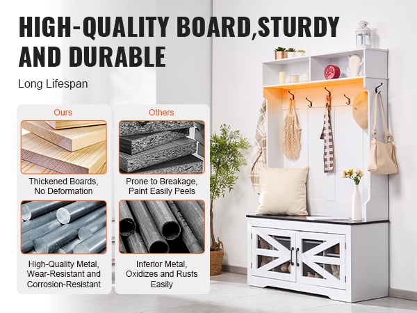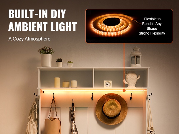 Naulakko penkillä lastulevyä ja metallia 16 kenkäpaikkaa 12 koukkua USB-valonauhalla