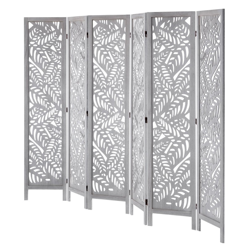 Tämä 6-osainen puinen tilanjakaja tuo boheemin ilmeen sisustukseen ja auttaa jakamaan tilaa kodissa, toimistossa, ravintolassa tai makuuhuoneessa. Kääntyvät paneelit mahdollistavat joustavan sijoittelun, tarjoavat näkösuojaa ja auttavat hillitsemään auringonvaloa.