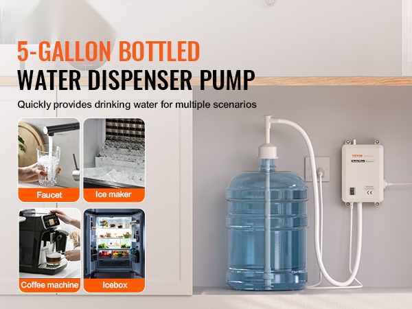Bittipulloveden pumppausjärjestelmä, joka tuottaa juomavettä paineen alla. Järjestelmää voidaan käyttää hanalle, jääkaapille, jääpalakoneelle, kahvikoneelle, teekoneelle ja muille laitteille, jolloin erilaiset vedenkulutustarpeet on helppo täyttää kotona tai ammattikäytössä.