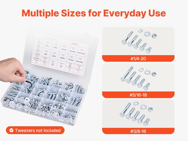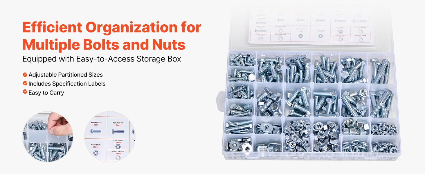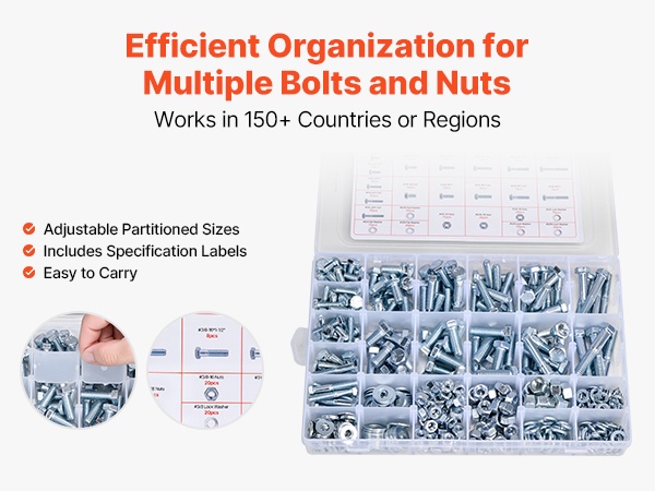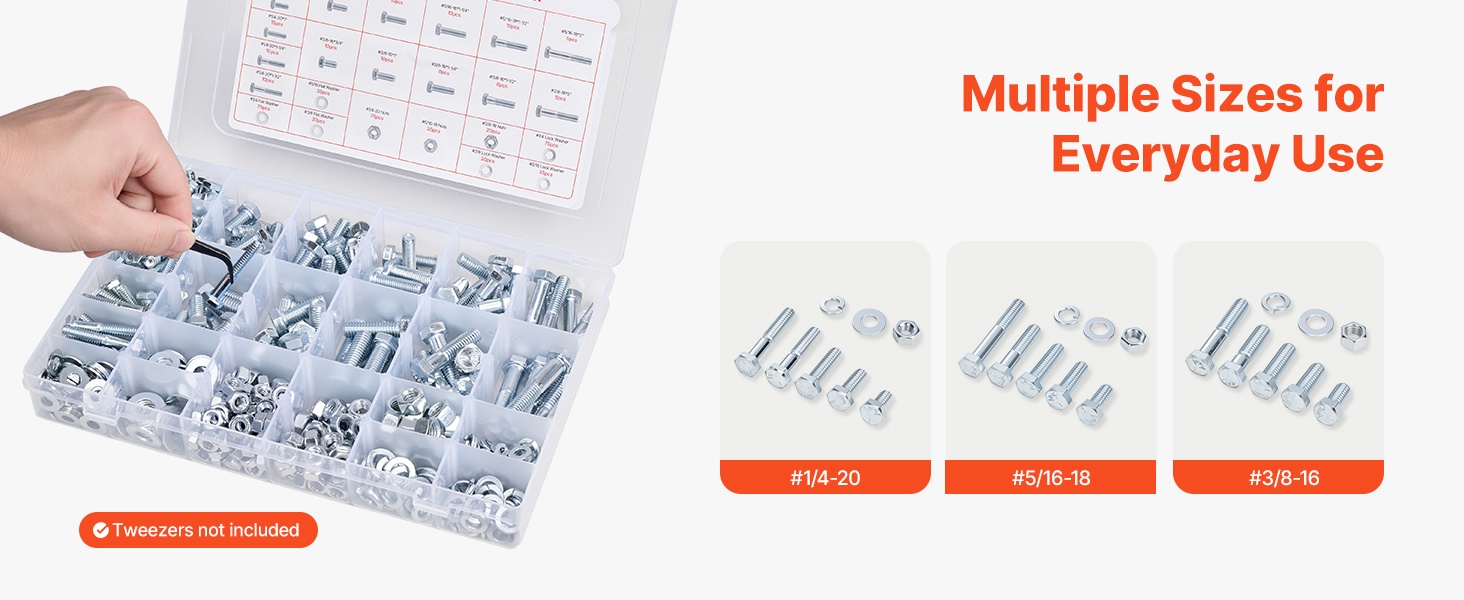 Tämä 1110-osainen sarja sisältää useita eri kokoja ja malleja, jotka soveltuvat hyvin huonekalujen, laitteiden ja ajoneuvojen kokoamiseen ja huoltoon sekä erilaisiin tee se itse -projekteihin.
