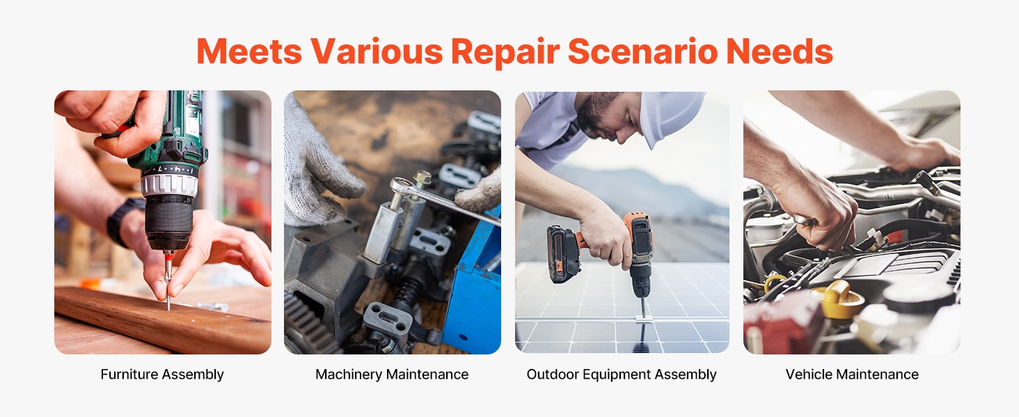 Sarja soveltuu päivittäisiin korjaustöihin ja on kätevä pitää kotona työkalupakissa varalla. Se käy esimerkiksi huonekalujen kokoamiseen, mekaanisiin korjauksiin, ajoneuvojen huoltoon ja moniin muihin kiinnitystehtäviin.