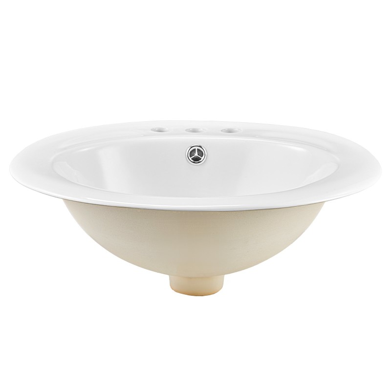 Puoliupotettava keraaminen kylpyhuoneallas ovaali valkoinen nano-lasitteella kolmella hananreiällä
