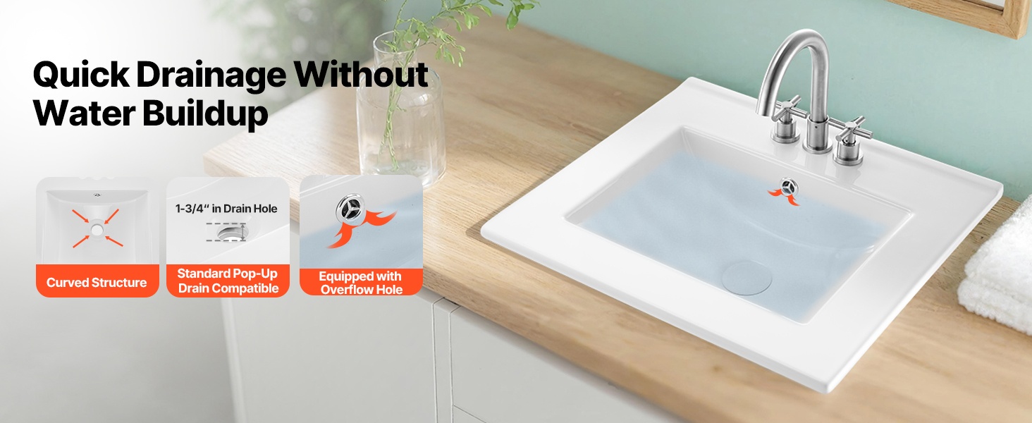 - Nopea vedenpoisto kaarevan pohjan ja leveän poistoreiän ansiosta