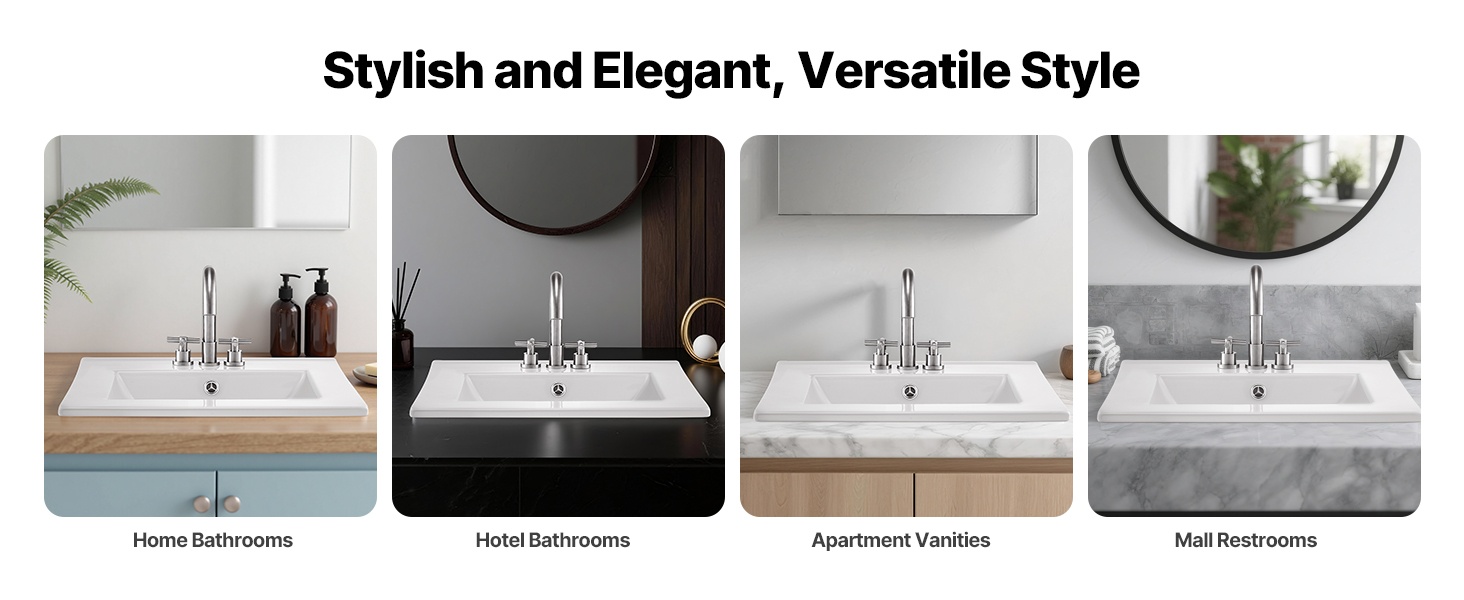 Ajattoman valkoinen väri ja pelkistetty muotoilu sopivat monenlaisiin sisustuksiin – pienistä kaupunkiasunnoista hotelleihin ja edustaviin koteihin. Puoliupotettava asennustapa korostaa työtason materiaalia ja luo viimeistellyn kokonaisuuden.