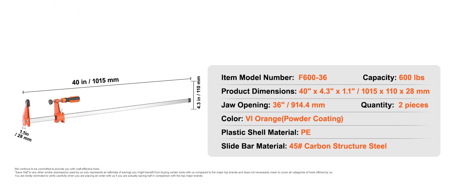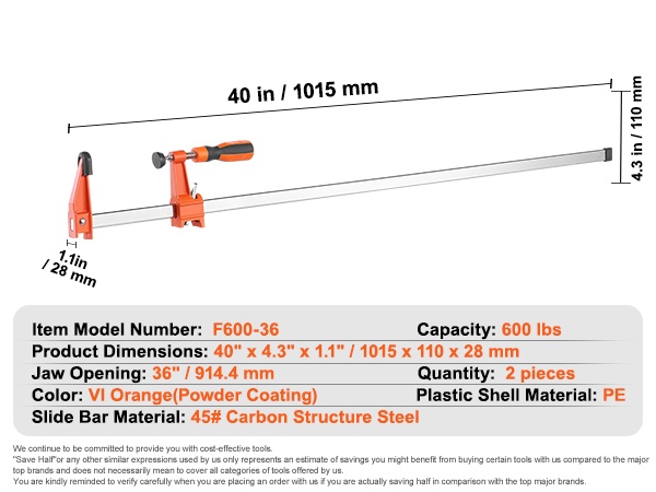 Puristimet valurauta ja hiiliteräs 914 mm 2 kpl puutöihin ja metallityöhön