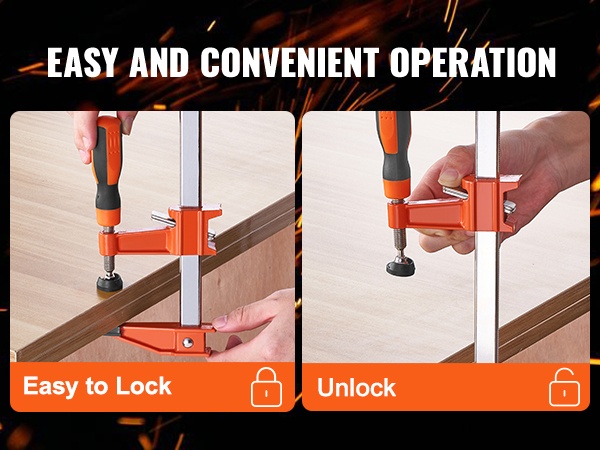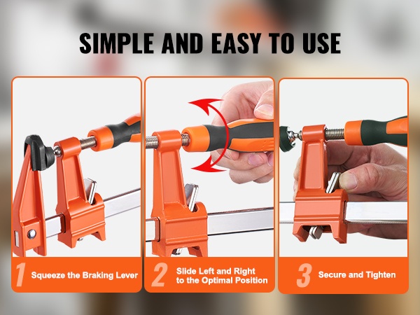 Suuri puristusvoima, jopa 600 lbs, helpottaa erilaisten puu- ja metalliosien kiinnittämistä. Puristimia voi käyttää esimerkiksi pöytien, tuolien ja kaappien kokoamiseen sekä teräskappaleiden pitävään kiinnitykseen.