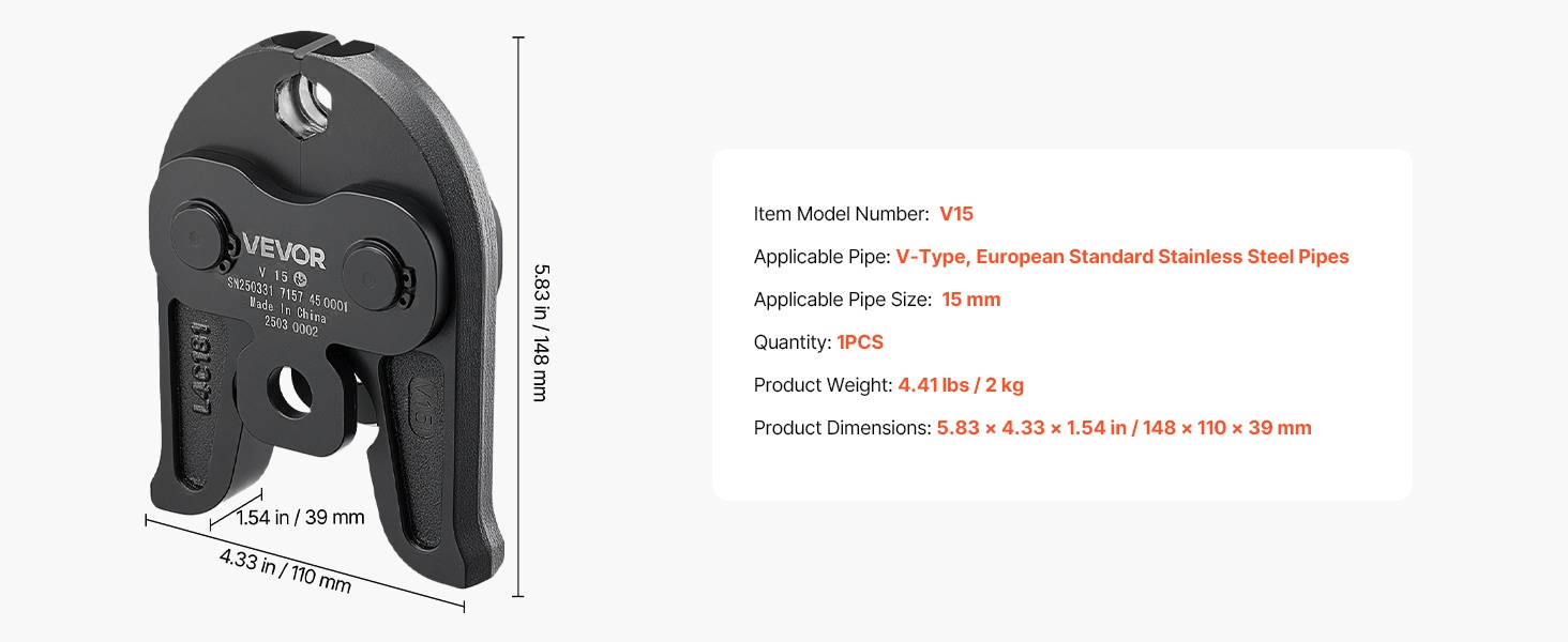 - 12 mm V-tyypin puristusleuka eurooppalaisen standardin ruostumattomille teräsputkille