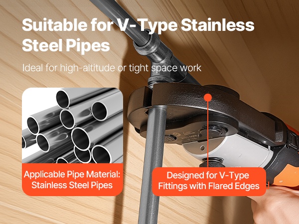 Sopii V-tyypin, eurooppalaisen standardin ruostumattomille teräsputkille. V-tyypin liittimissä tulee olla levennetyt reunat, jotta puristus on oikea, tarkka ja tiivis.