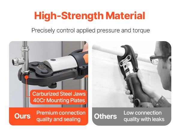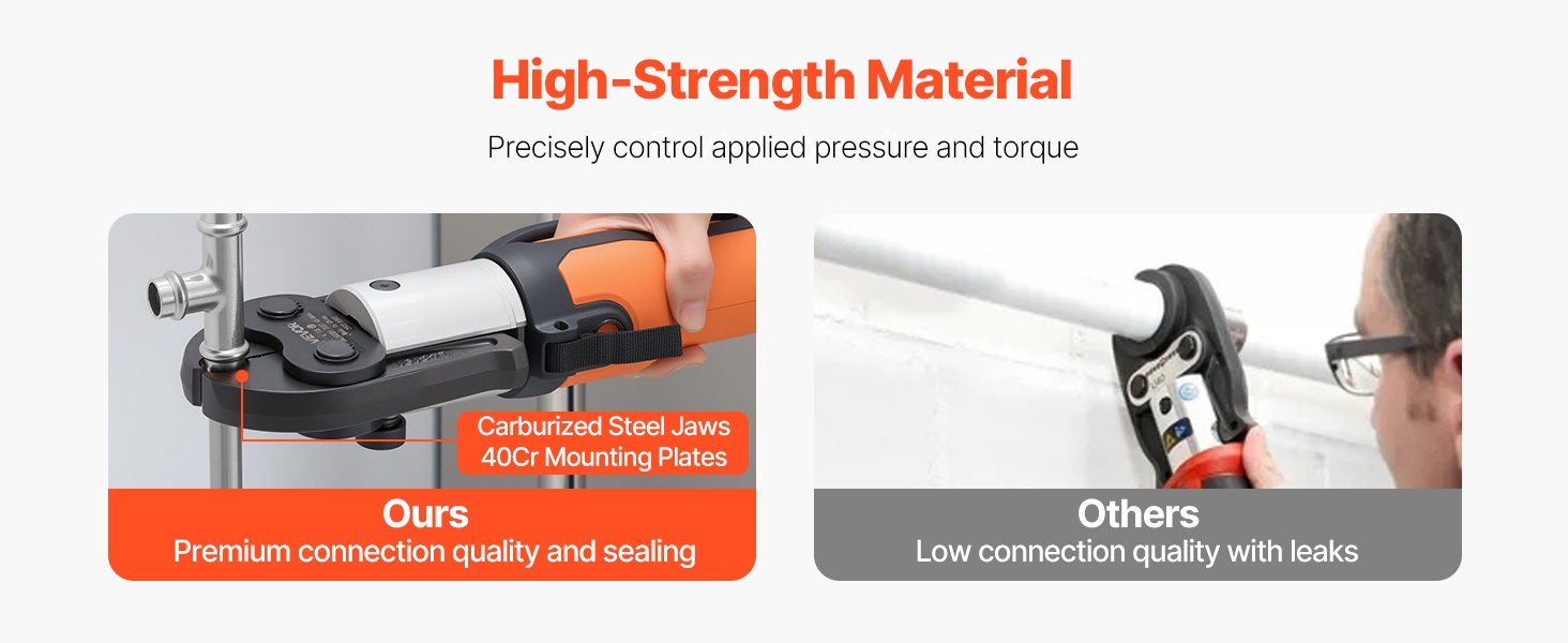 Puristusleuka on valmistettu korkealujuuksisesta sementoidusta teräksestä, mikä varmistaa lujat liitokset ja erinomaisen tiiveyden vaativissakin asennuksissa.