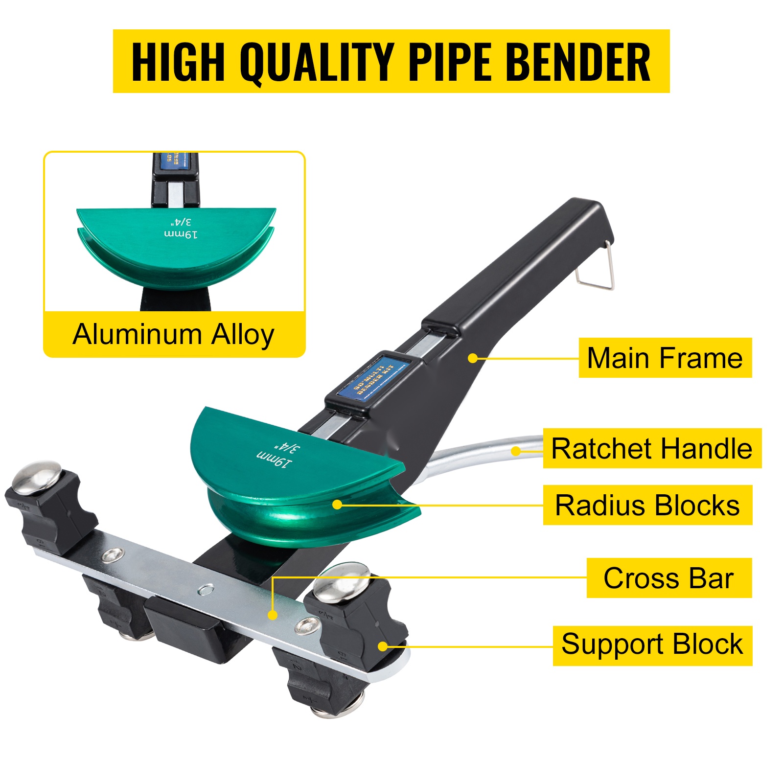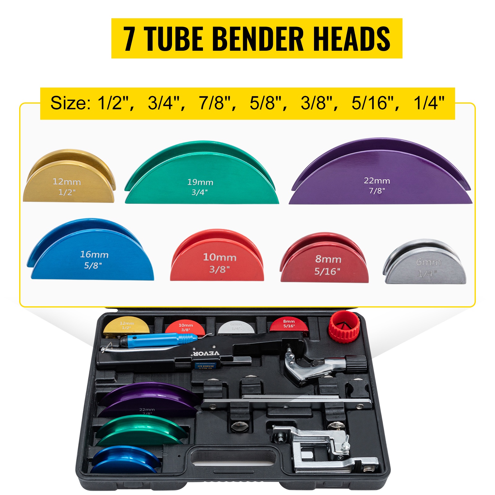 Tämä 1/4"-7/8" putkentaivutin on suunniteltu kupari-, alumiini- ja ohueseinäisten teräsputkien taivuttamiseen jopa 90° kulmaan sekä eteen- että taaksepäin. Mukana on 7 erikokoista taivutuspäätä ja kätevä muovinen kuljetuslaukku siistiä säilytystä varten.