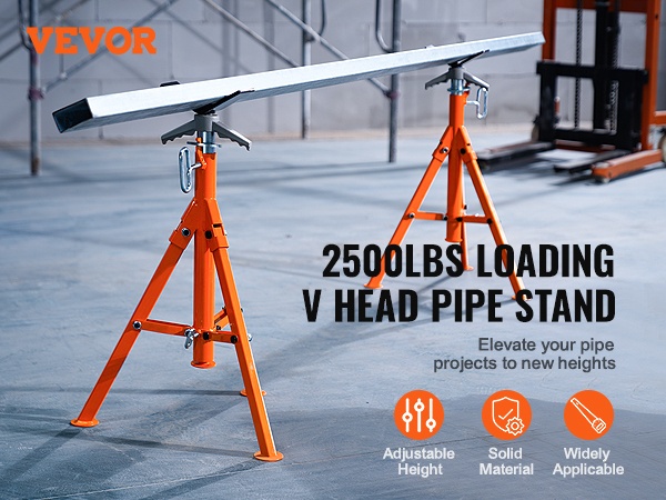 Tämä korkeussäädettävä V-päällinen putkiteline tarjoaa tukevan ja turvallisen alustan putkien käsittelyyn, hitsaukseen ja kierteitykseen. Teline sopii 1/2–12 tuuman (1.3–30.5 cm) putkille, ja sen kantavuus on jopa 2500 lbs / 1134 kg.