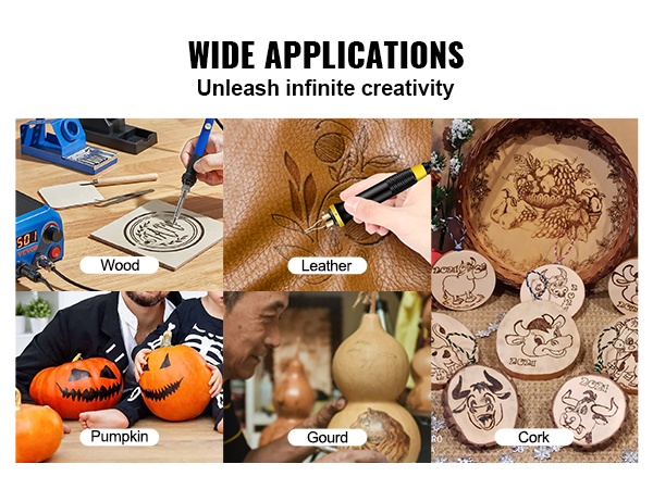- Soveltuu puulle, nahalle, korkille, kurpitsalle, pullokurpitsoille ja muille vastaaville materiaaleille