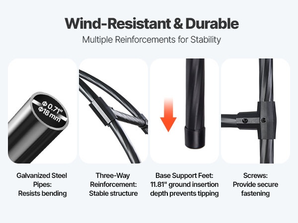 Tämä metallinen puutarhakaari viimeistelee pihan ilmeen ja sopii monenlaisiin puutarhatyyleihin. Sinkityistä teräsputkista valmistettu kaari on vahvistettu T-liittimillä paremman tuulenkestävyyden takaamiseksi. Koko 94.49 × 125.98 tuumaa (noin 2400 × 3200 mm) tarjoaa runsaasti tilaa köynnöskasveille sekä häiden, juhlien ja muiden tilaisuuksien koristeluun.