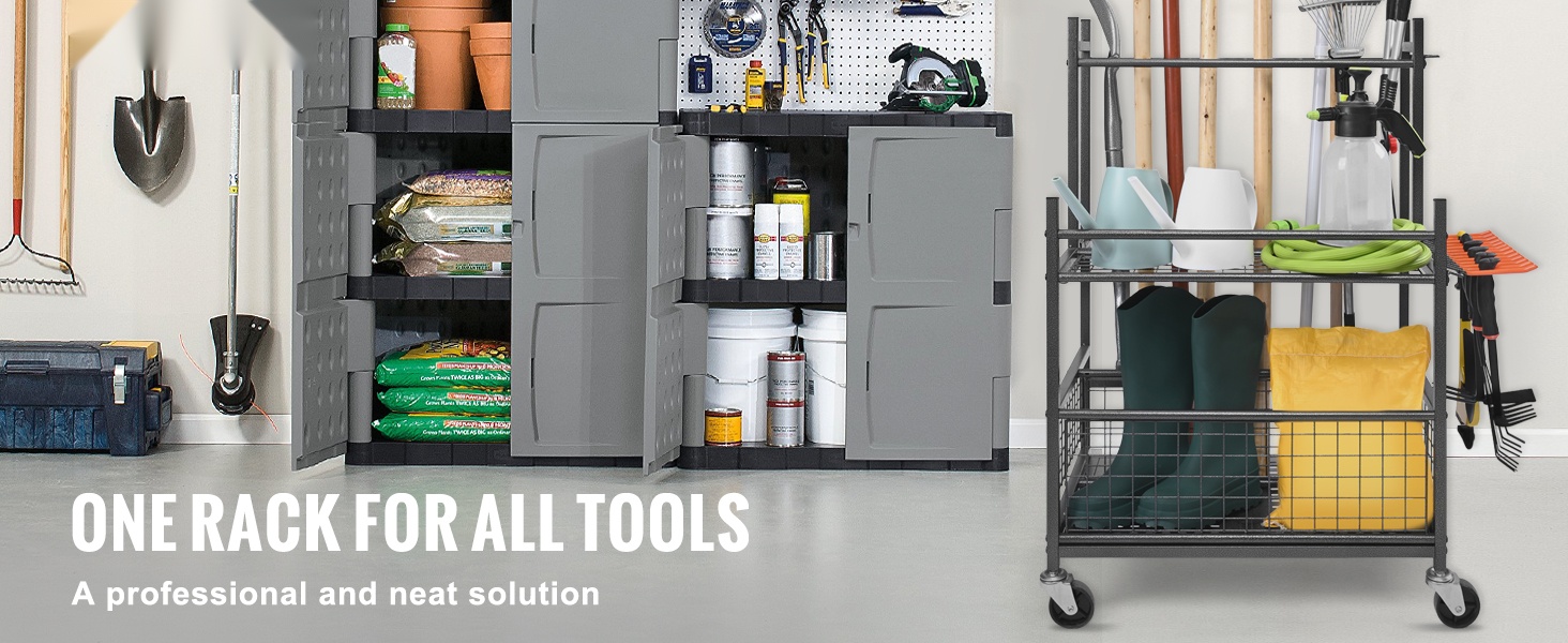 Teline sopii monenlaisiin tiloihin: puutarhaan, autotalliin tai työkaluvajaan. Erilaiset työkalut voidaan asettaa joko yläosan paikkoihin tai ripustaa koukkuihin, jolloin tila tulee tehokkaasti hyödynnettyä.