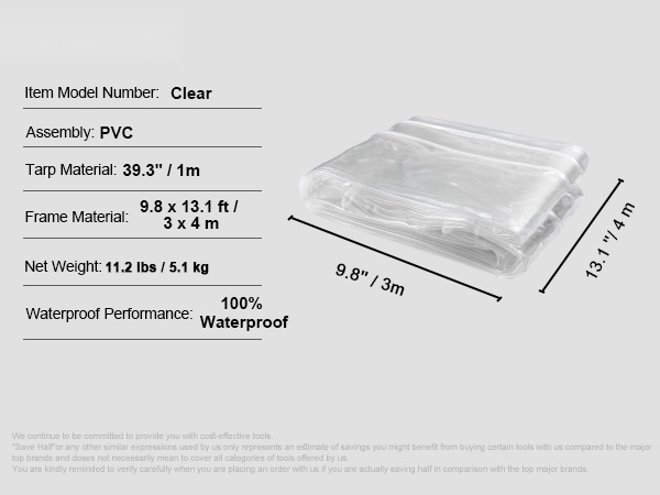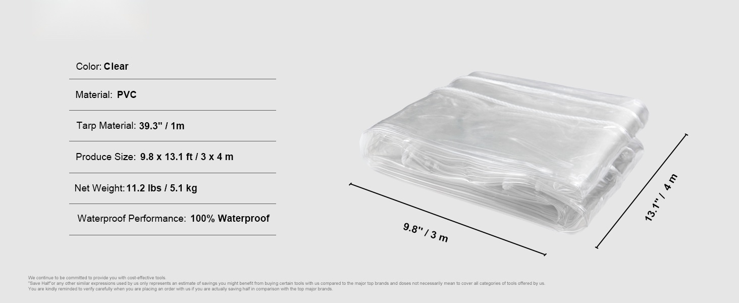 Tämä vihreä PVC-peite tarjoaa tehokkaan suojan sateelta, auringolta, pölyltä ja tuulelta. Materiaali on täysin vedenpitävä ja antaa myös hyvän näkösuojan sekä estää valon läpäisyä, joten se soveltuu hyvin erilaisiin ulkokohteisiin ja suojarakenteisiin.
