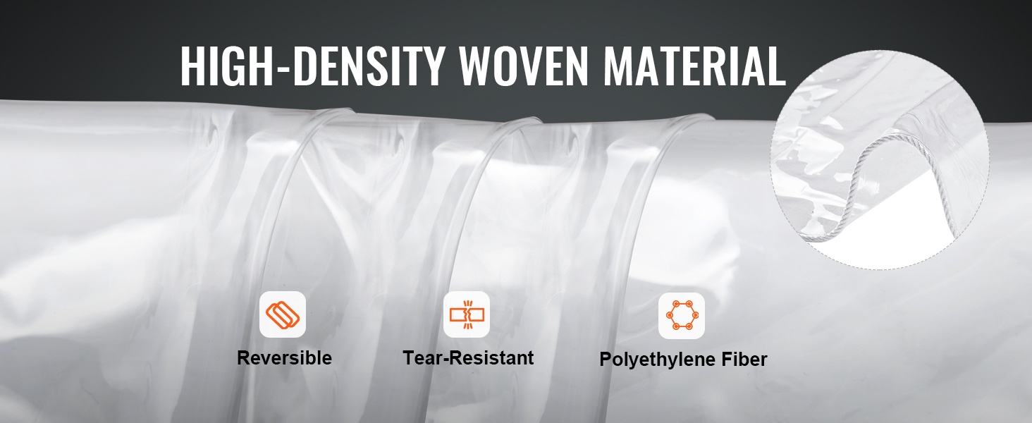 Materiaalina on molemmin puolin käytettävä PVC, jolla on hyvä repäisylujuus ja homeenmuodostusta ehkäisevät ominaisuudet. Pitkäaikaisessakin ulkokäytössä peite säilyy joustavana ja kestävänä ilman ennenaikaista haurastumista tai murtumista.