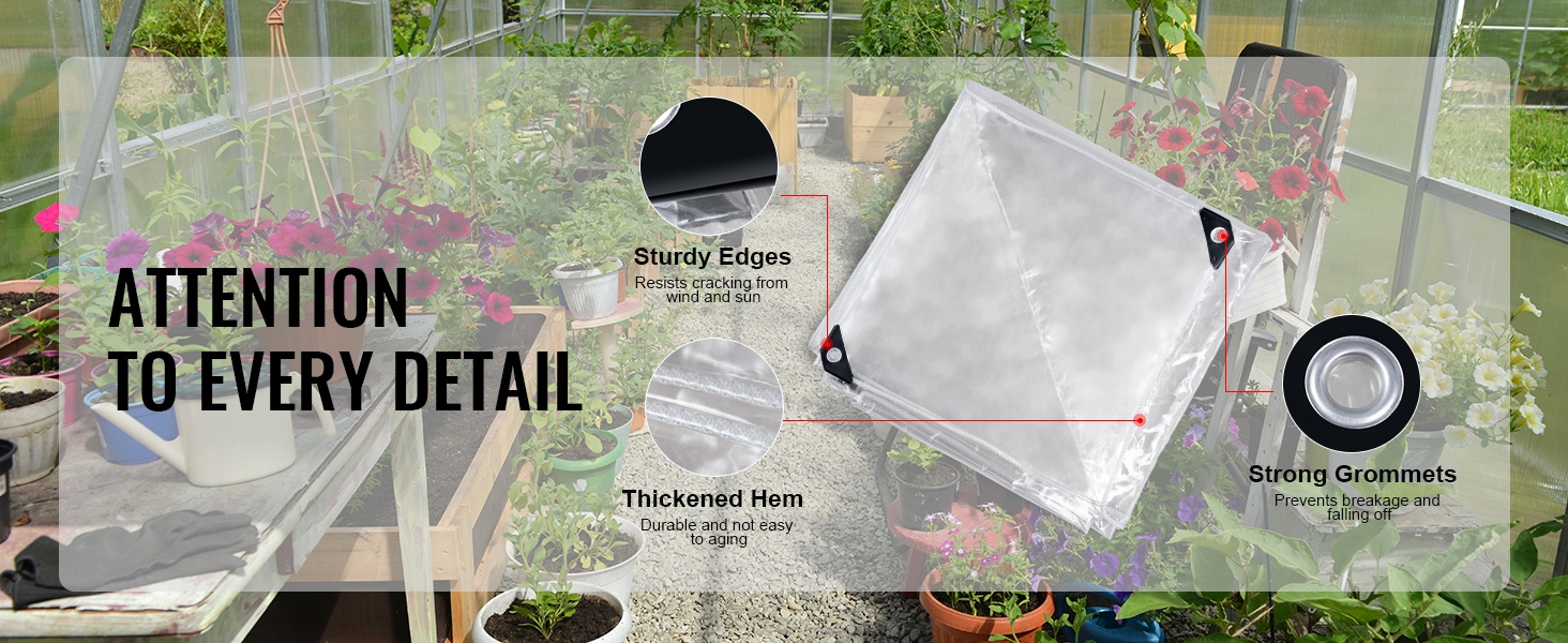 Peitteessä on purjerengas 39.3" / 1 m välein, mikä helpottaa peitteen kiristämistä ja kiinnittämistä. Kun peite saadaan tuettua useasta kohdasta, se pysyy paremmin paikallaan eikä pääse löystymään tai valumaan suojattavien esineiden päältä.