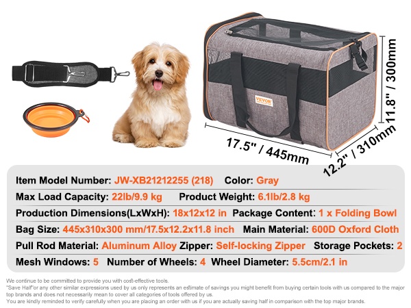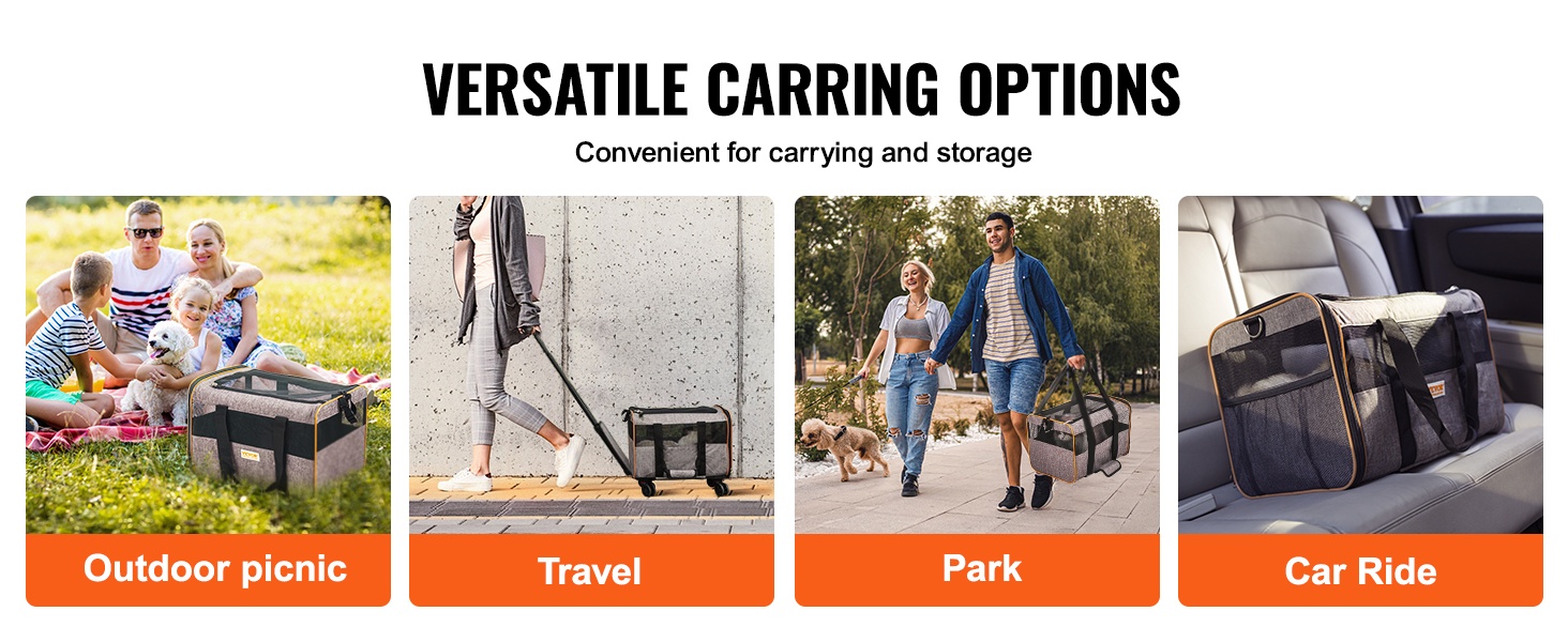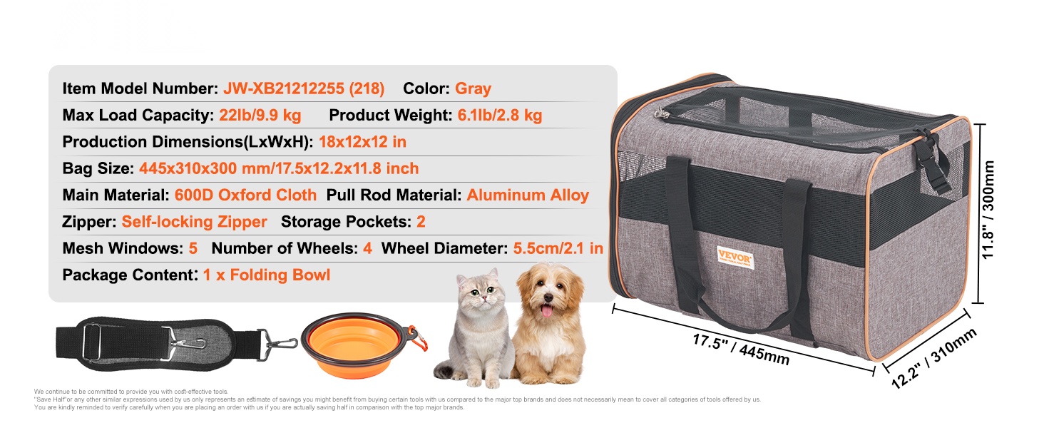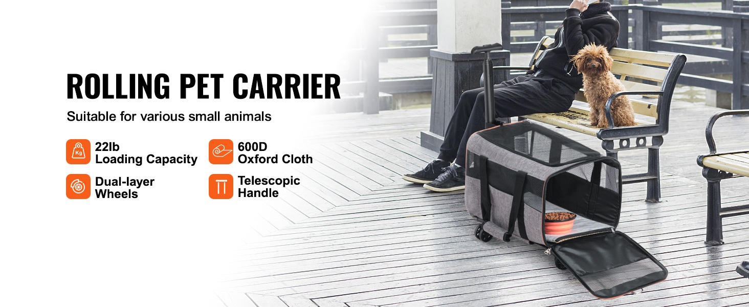 Matkusta mukavasti lemmikin kanssa tämän kätevän pyörällisen kuljetuslaukun avulla. Tukeva 600D Oxford -kangas ja vakaa rakenne tarjoavat turvallisen ja miellyttävän tilan kissoille ja pienille koirille, joiden paino on enintään 18 lb/8.1 kg.