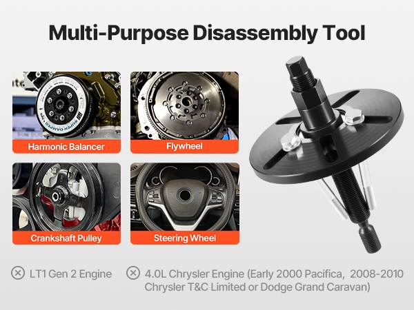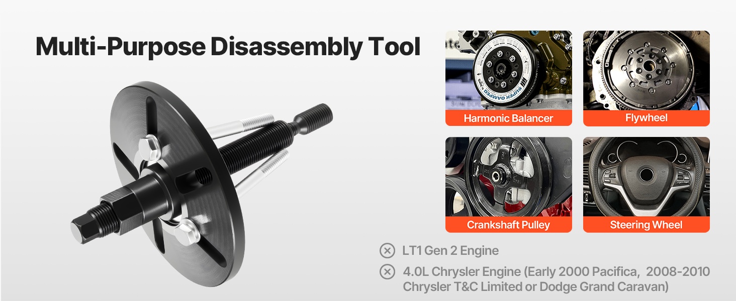 Laakerin ja navan irrotustyökalu sopii useimpiin kotimaisiin, eurooppalaisiin ja aasialaisiin etuvetoisiin ajoneuvoihin. Työkalu käy sekä etu- että takapyörien napoihin, mikä tekee siitä käytännöllisen ratkaisun ammattilaisille ja korjaamoille.