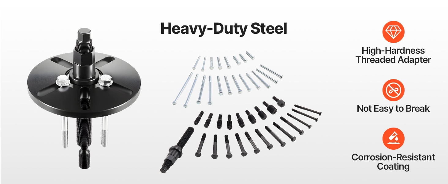 7/8 in-9UNC -ruuvi on lämpökäsitelty ja tarkasti kierteytetty, mikä lisää sen lujuutta ja käyttöikää. Kaikki tämän navanlaakerin irrotustyökalun osat on valmistettu paksusta, raskaan sarjan teräksestä, joka kestää korkean puristus- ja vetopaineen.