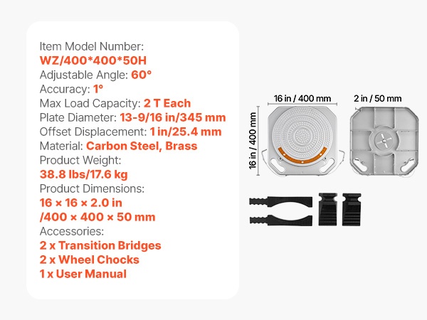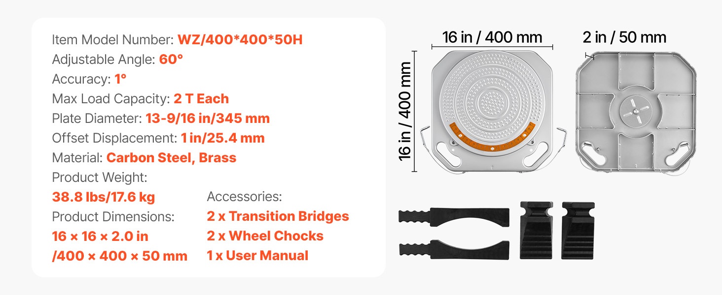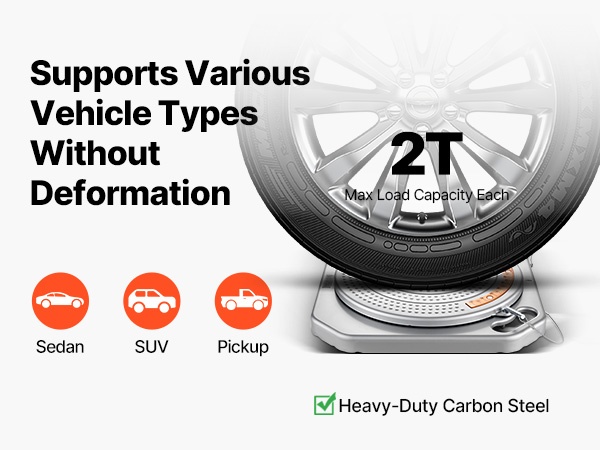 Raskaaseen käyttöön suunnitelluista teräslevyistä valmistettu jokainen suuntauslevy kestää jopa 2 T kuorman. Levyjä voidaan käyttää henkilöautoissa, maastoautoissa ja kevyissä pick-upeissa, joten ne sopivat monenlaisiin suuntausprojekteihin.