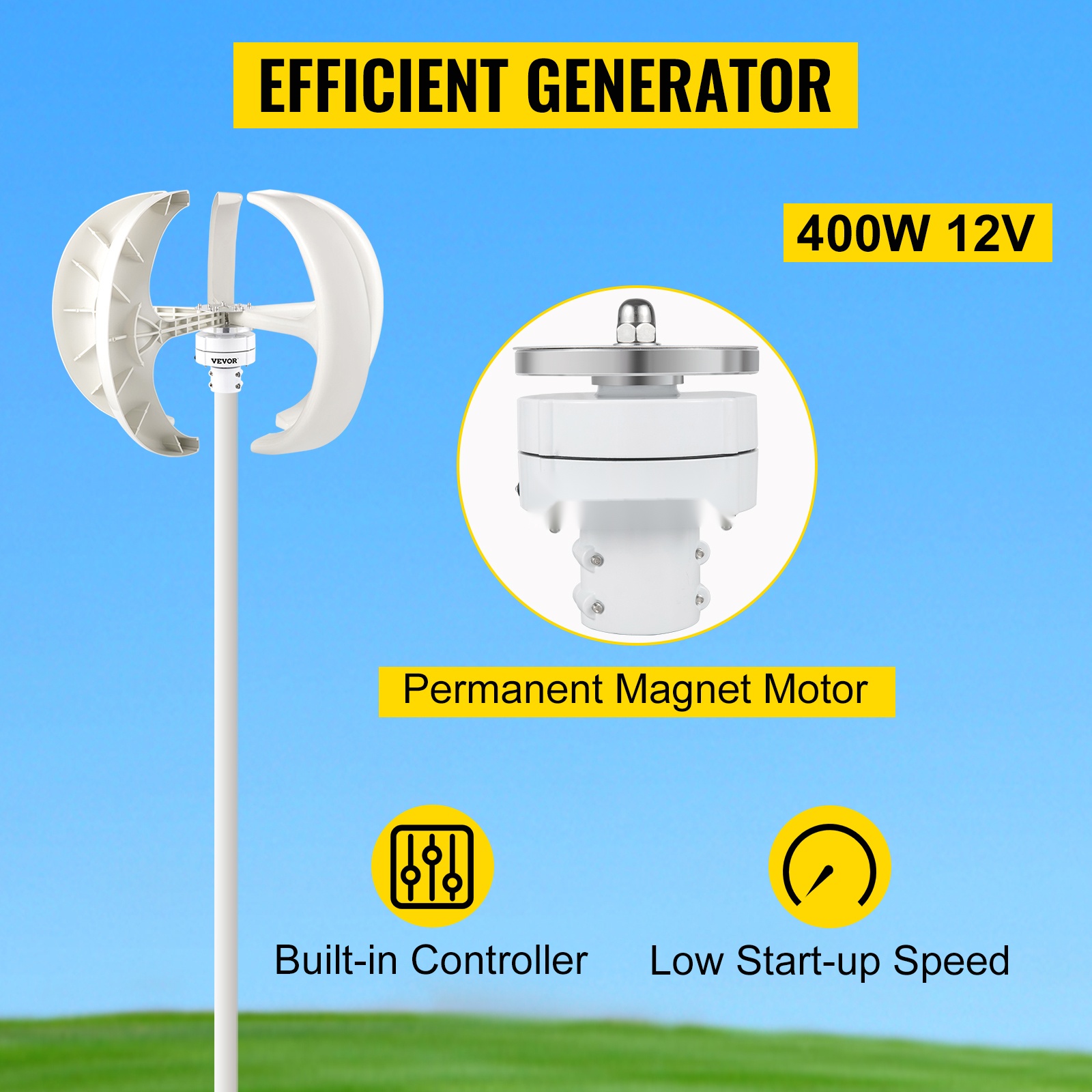 Kevyen rakenteen ja kompaktin muodon ansiosta generaattori käynnistyy jo pienellä tuulennopeudella. Suuri tuuleen osuva pinta-ala mahdollistaa energian tuoton matalissakin tuulinopeuksissa, mikä lisää käyttömahdollisuuksia vaihtelevissa olosuhteissa.