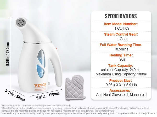 Pystymallinen käsikäyttöinen vaatehöyrystin 800 watin teho irrotettava 240 millilitran säiliö suojakäsineet