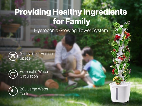 Modulaarisen rakenteen ja mukana tulevien tarvikkeiden ansiosta torni on helppo koota ilman työkaluja tai monimutkaisia vaiheita. Se sopii myös aloittelijoille, jotka haluavat kokeilla vesiviljelyä ja päästä nopeasti istuttamisen pariin.