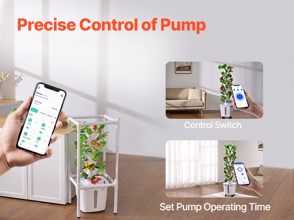 Vesiviljelyjärjestelmässä on älykäs pistorasia, joka ohjaa vesipumpun toimintaa. Valon kestoa ja pumpun käyntivälejä voidaan säätää yhdellä painalluksella, mikä yksinkertaistaa käyttöä ja vähentää tarvetta jatkuville käsisäädöille.