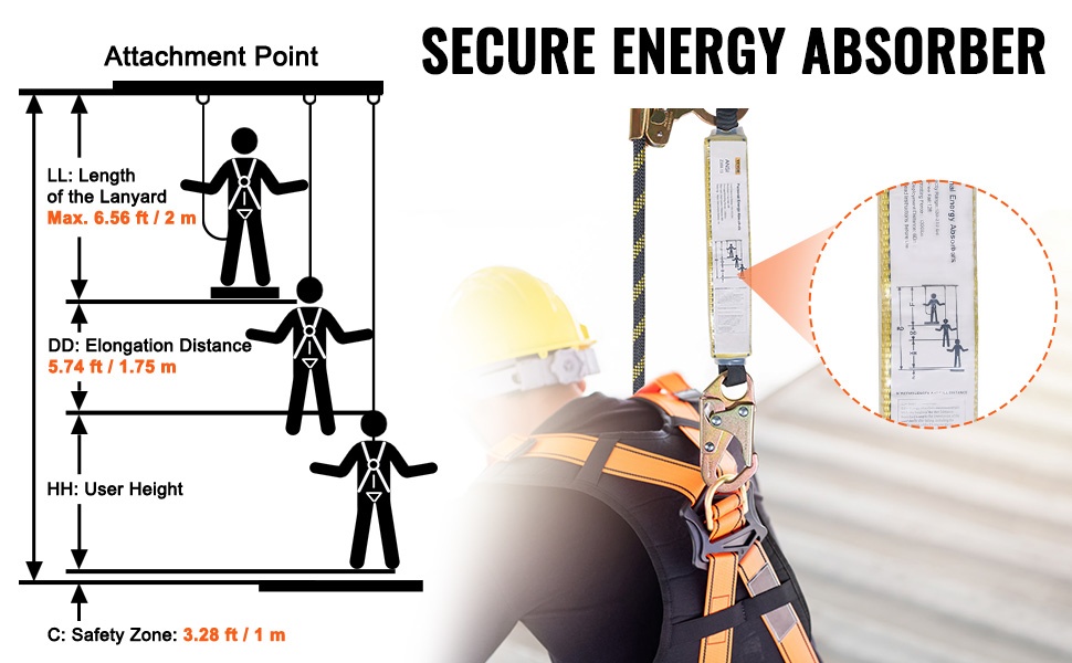 Pystysuuntainen turvaköysi on varustettu polyesterisestä valmistetulla energianvaimentimella, joka on suojattu kestävällä PVC-suojuksella. Putoamistilanteessa vaimennin aktivoituu, pienentää kehoon kohdistuvaa rasitusta ja vähentää loukkaantumisriskiä.