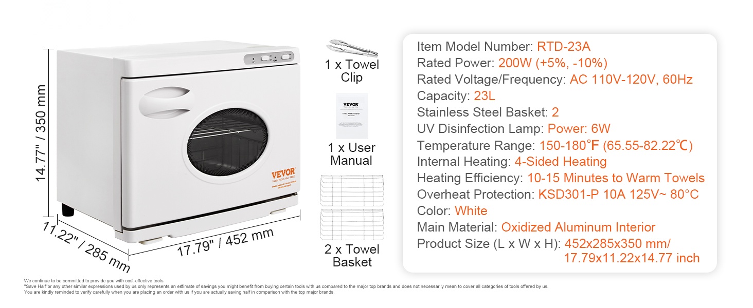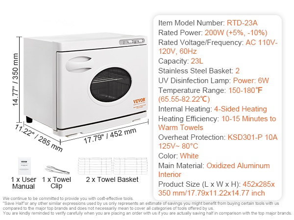 23L pyyhelämmittimessä on ruostumattomasta teräksestä valmistetut tasot, käyttöohje ja pihdit. Se vetää 50-60 vakiokokoista pyyhettä, joten voit lämmittää suuren määrän kerralla ilman useita lämmityssyklejä. Käyttö on tehokasta ja vaivatonta.