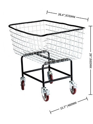 Tämä teräksinen pyykkikärry on suunniteltu suurille pyykkimäärille kotiin ja ammattikäyttöön. Tukeva teräsrunko, kromattu lankakori ja 5'' PP-pyörät tekevät liikkumisesta kevyttä myös täyden korin kanssa.