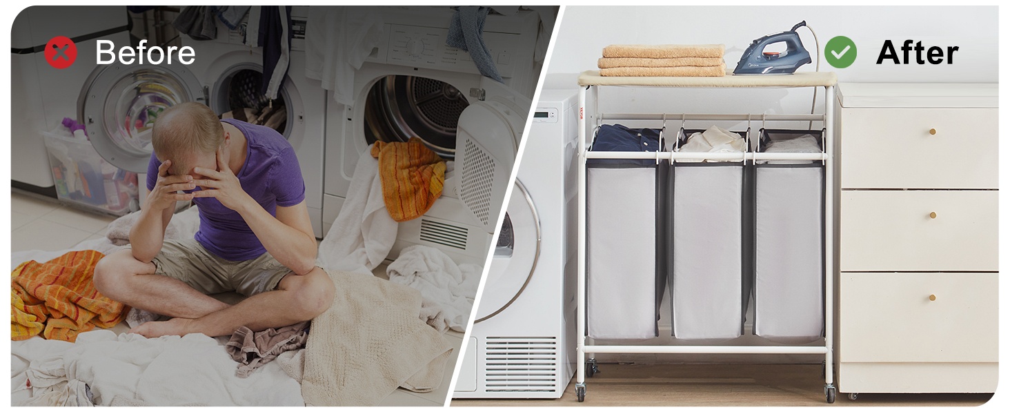 - 4 irrotettavaa pyykkipussia helppoon lajitteluun ja kuljettamiseen