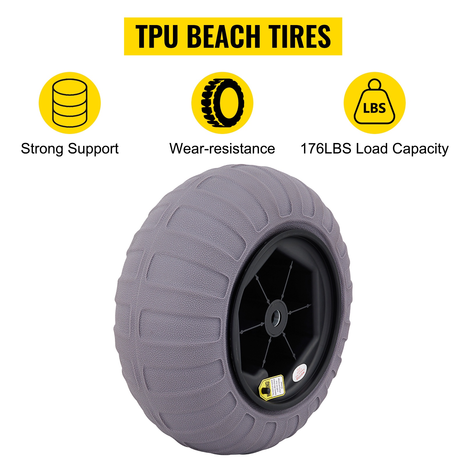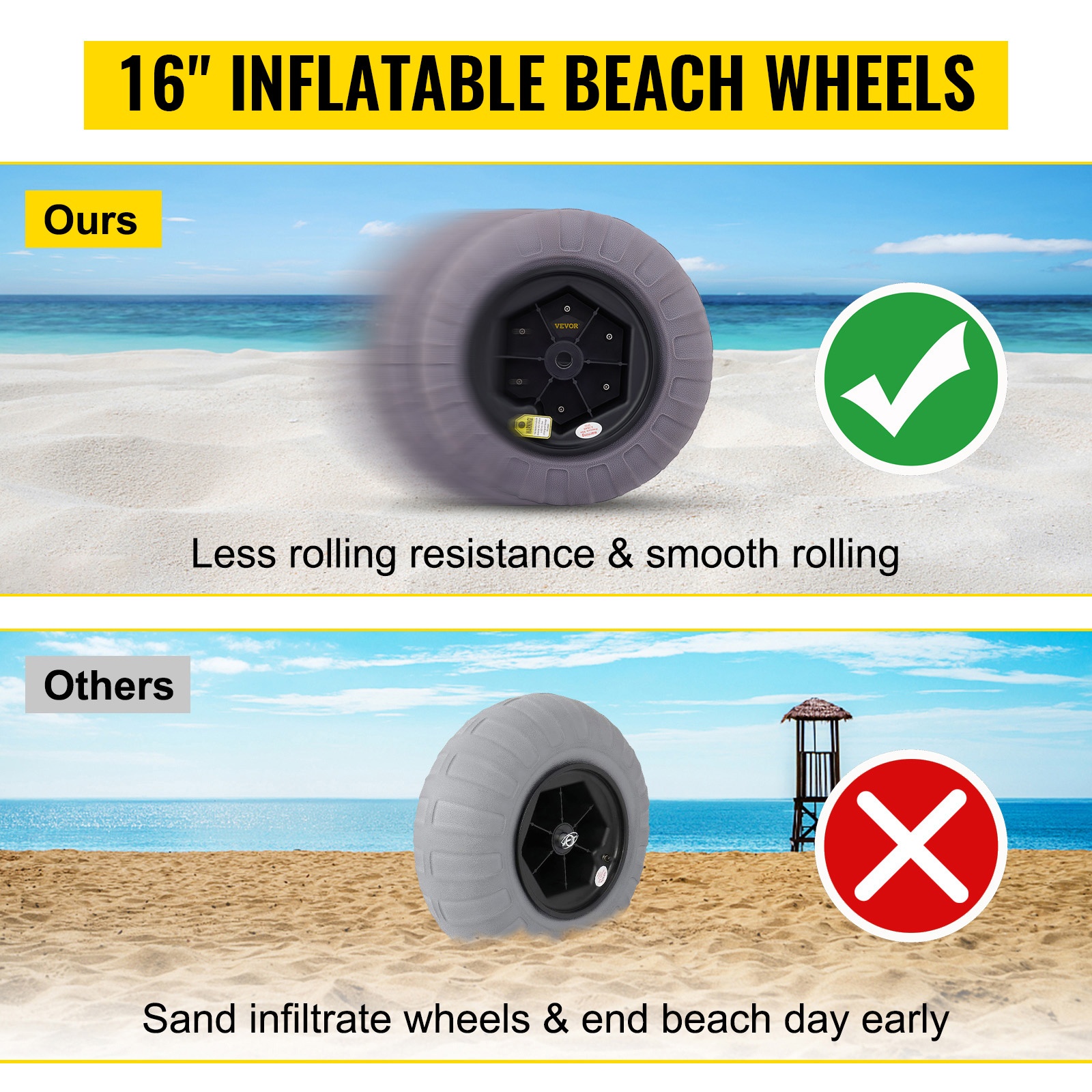 Kaksi 13-tuumaa rantapyörää on suunniteltu 2–3 PSI matalapaineella. Rengas ei helposti uppoa tai kyntä hiekassa ja muilla haastavilla alustoilla, ja hieno hiekka ei pääse yhtä helposti renkaan sisään.