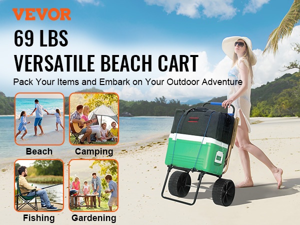 Vaunu on suunniteltu helpottamaan rantalomia ja ulkoilupäiviä. Se kuljettaa kylmälaukut, aurinkovarjot, viltit ja muut tarvikkeet yhdellä kertaa, joten et joudu tekemään useita kantokertoja pehmeässä hiekassa.