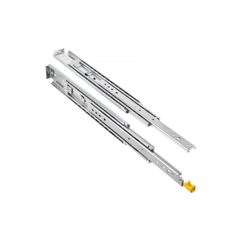 Tämä 48" raskaan käytön laatikkokiskosarja soveltuu sekä teolliseen että kotikäyttöön. Kolmiosainen, kokonaan ulos vedettävä rakenne hyödyntää laatikon tilan tehokkaasti, ja kylmävalssatusta teräksestä valmistetut kiskot kestävät kovaa kuormitusta. Kuulalaakerit takaavat tasaisen ja hiljaisen liu’un, ja lukitustoiminto auttaa pitämään laatikon turvallisesti paikallaan.